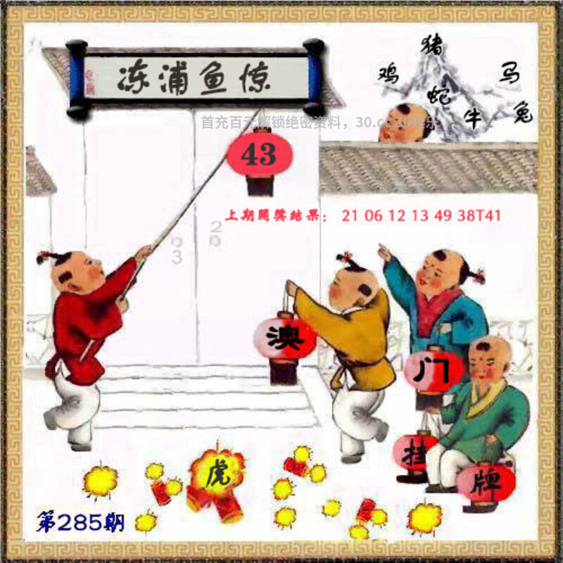 285期:🌷绝杀两肖【龙牛】开:马24中 |